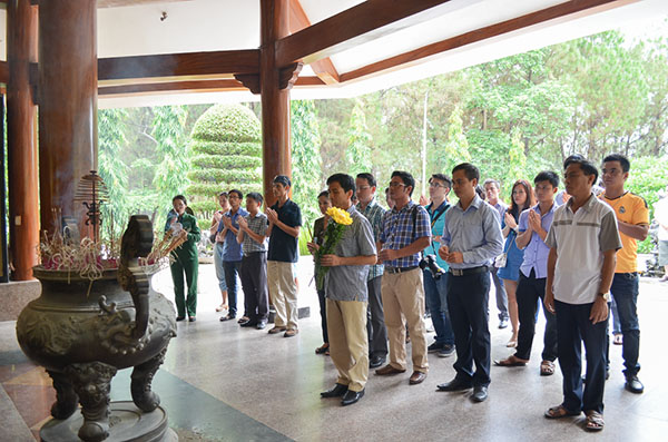 Mọi người vô cùng xúc động, nước mắt trào dâng khi nghe hướng dẫn viên Thái Hoà kể về sự hy sinh anh dũng của 10 cô gái TNXP tại Ngã Ba Đồng Lộc