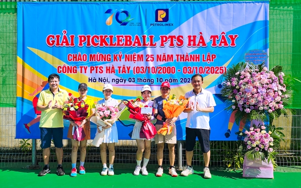 Được sự đồng ý của Đảng ủy/ Ban Giám đốc/BCH Công đoàn công ty. Hôm nay, trong không khí vui tươi, phấn khởi hướng về kỷ niệm 25 năm thành lập Công ty PTS Hà Tây (03/10/2000 - 03/10/2025) và 70 năm ngày thành lập Tập đoàn xăng dầu Việt Nam (12/01/1956 - 12/01/2026), chúng ta đã cùng nhau tổ chức và tham dự Giải thi đấu Pickleball với sự hưởng ứng sôi nổi của đông đảo cán bộ, công nhân viên.